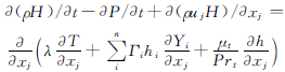 (4)能量方程。能量方程描述了流動(dòng)過(guò)程中流體的能量守恒性質(zhì),考慮組分影響后的方程為: