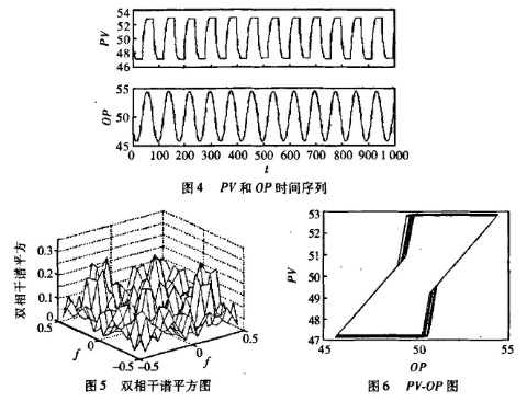 存在非線性閥的控制回路產(chǎn)生非高斯性和非線性時(shí)間序列。Choudhury在2003年,提出根據(jù)控制誤差信號(hào)(SP2PV)的非高斯性和非線性作為確定控制回路性能的方法。這種方法利用標(biāo)準(zhǔn)重譜或雙相干譜的靈敏度檢測(cè)信號(hào)的非線性。非線性時(shí)間序列的一個(gè)顯著特點(diǎn)是出現(xiàn)相位耦合,一個(gè)頻率下的相位需要由其它頻率的相位來決定。相位耦合時(shí)高階譜所具有的特性可以通過信號(hào)的雙相干譜檢測(cè)。