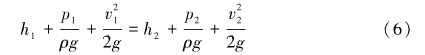伯努利方程中理想流體(不存在摩擦阻力)的總能量不變,即位置壓頭、靜壓頭、速度壓頭的和總是一個固定值。用下標(biāo)1, 2分別表示兩處流體位置,P為流體的壓力,用式(6)表達