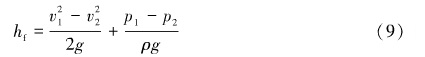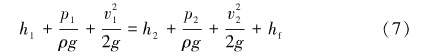 因為管道是水平安裝的,因此位置壓頭都相等,即h1 =h2,將公式化簡得式(8)