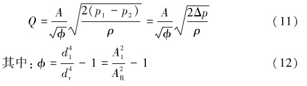 由流體流動的連續(xù)性方程流量口等于流通而積和流速的乘積可得式(11)