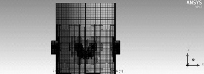 套筒中流體介質(zhì)的三維立體模型導(dǎo)入項目管理區(qū)Meshing,將物理模型設(shè)定為計算流體動力學(xué)CFD模型,求解器為FLUENT,關(guān)聯(lián)度設(shè)置為100完全關(guān)聯(lián),關(guān)聯(lián)中心設(shè)置為Fine,網(wǎng)格劃分方法為Cutcell o圖6為劃分網(wǎng)格后的套筒。