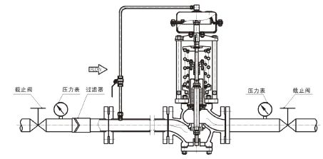 ◆自力式閥前壓力調(diào)節(jié)閥 安裝方位及管道附件說明: