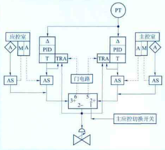 該控制系統由壓力傳感器、信號隔離器(信號轉換模塊)、可編程程序控制器(調節卡)、跟蹤卡、手自動選擇開關、固態邏輯組件、繼電器邏輯組件包以及主應控選擇開關組成。