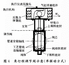 d)從調(diào)節(jié)閥執(zhí)行方式上分析:直行程的調(diào)節(jié)閥在垂直安裝方式上,只要求連接時(shí)零點(diǎn)對(duì)中良好就不可能產(chǎn)生填料偏磨現(xiàn)象。而直行程側(cè)裝的調(diào)節(jié)閥不僅要求零點(diǎn)對(duì)中,還要求全行程對(duì)中也要良好,否則,就極易產(chǎn)生填料偏磨現(xiàn)象,長期偏磨會(huì)造成局部填料磨損嚴(yán)重而產(chǎn)生泄露故障。